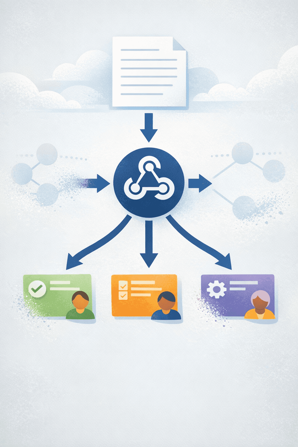 The simple pipeline looks like this: you drop meeting notes into Notion, a Notion automation fires on “new page”, that automation calls a webhook, and the assistant extracts action items and writes tasks into the right database, assigned to the right people.