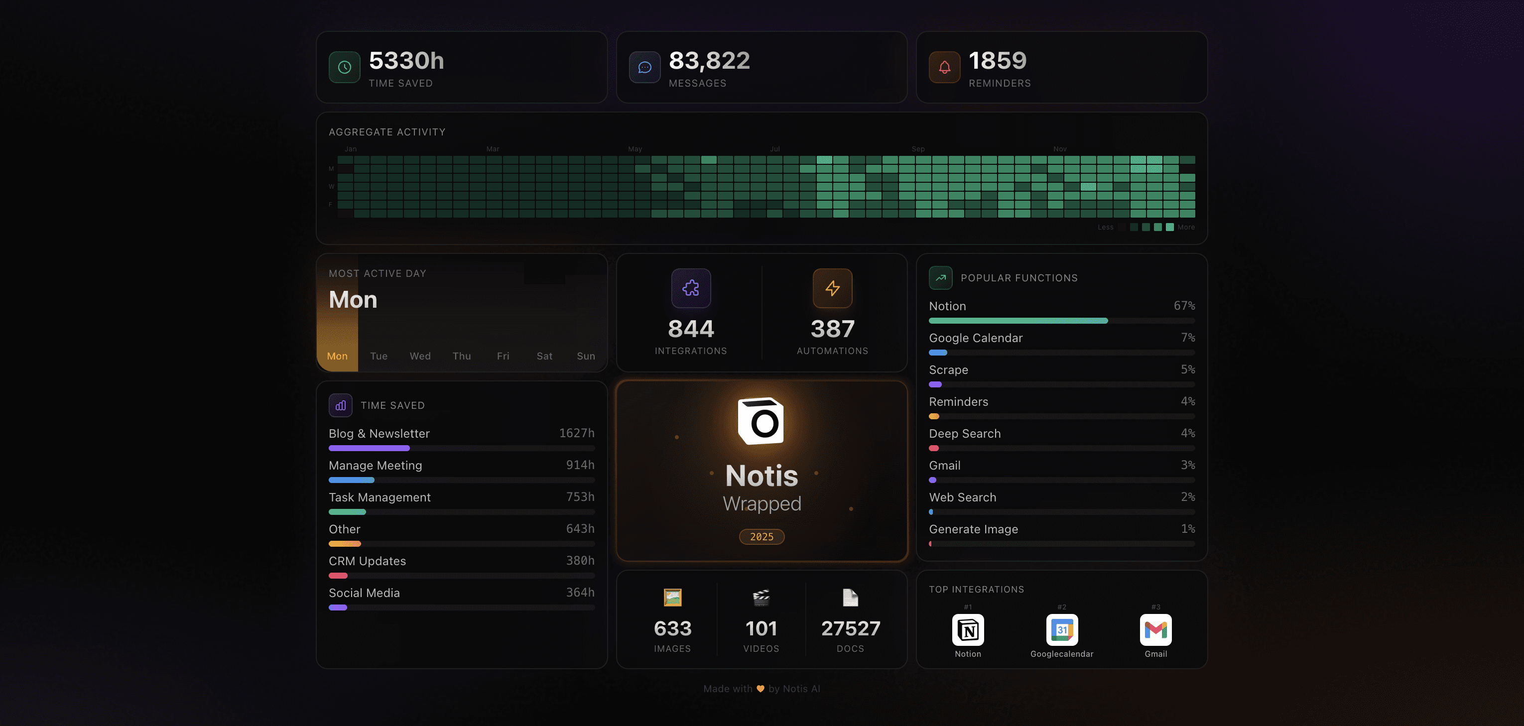 Notis has delivered over 5,000 hours of time saved to our users by creating 27k Notion documents.