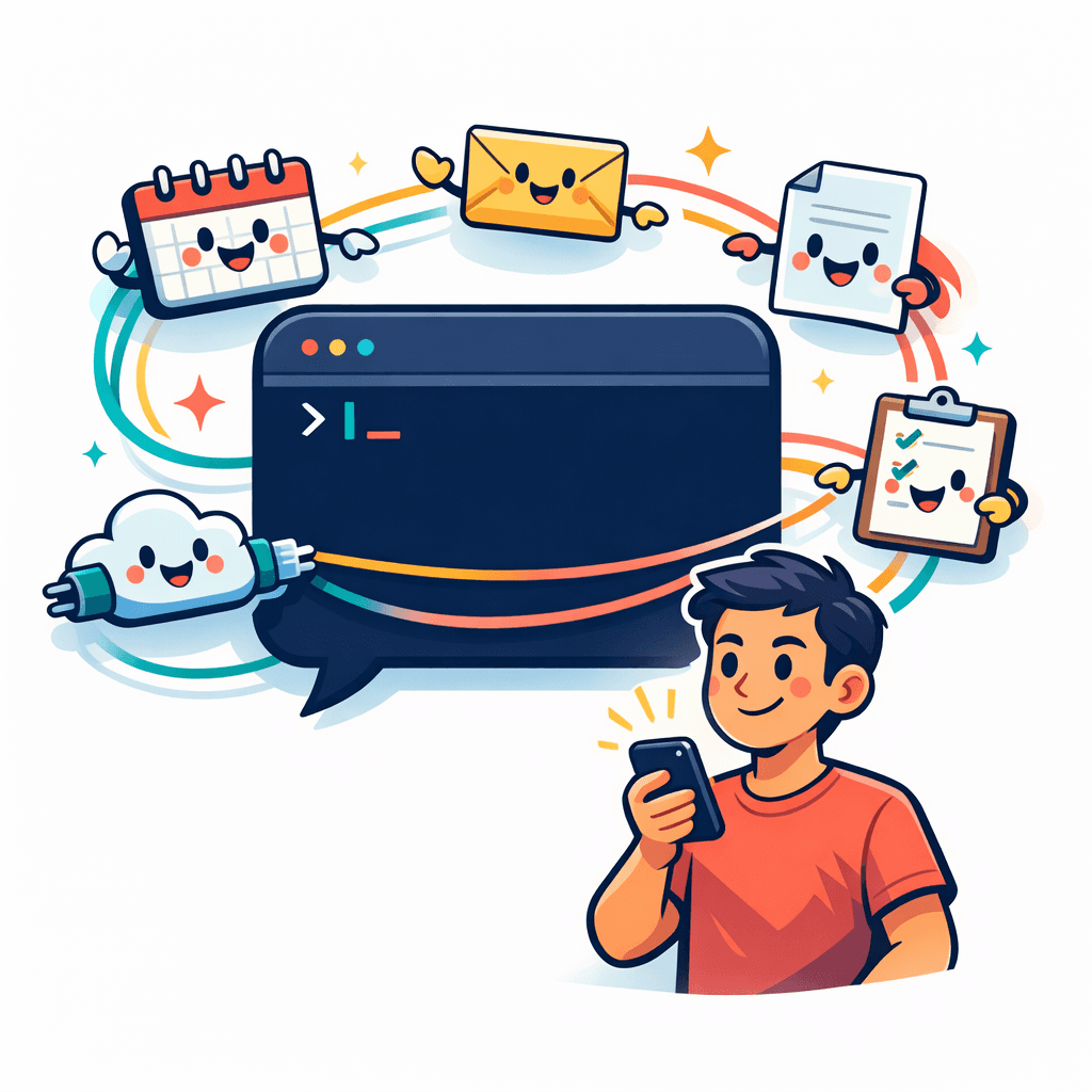 Your chat becomes the command line—not a terminal, but a command surface where you say "do this" and it routes to the right system.