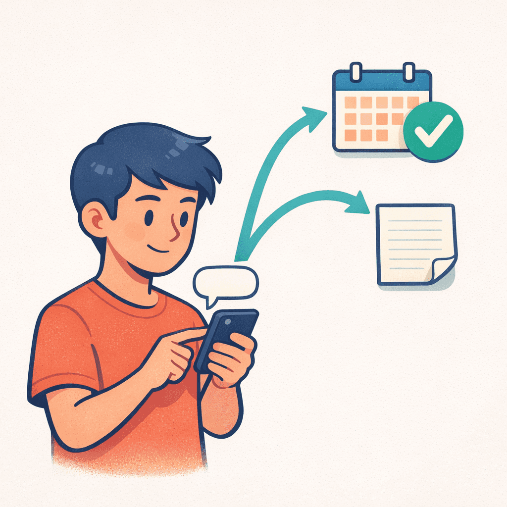 You send a message. You forward context. You record a voice note. The system turns that intent into an action and returns a result you can trust.