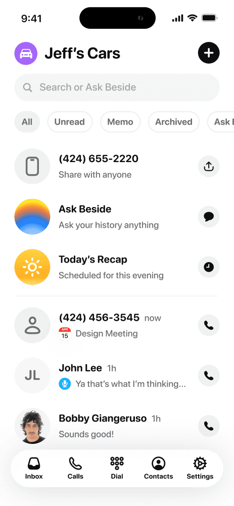 Beside is a business phone and AI receptionist product designed for individuals and teams that need a more professional front door for inbound communication. Its value proposition centers on handling calls, summarizing conversations, helping with scheduling, and plugging phone activity into downstream workflows through integrations such as Zapier and CRM tools.