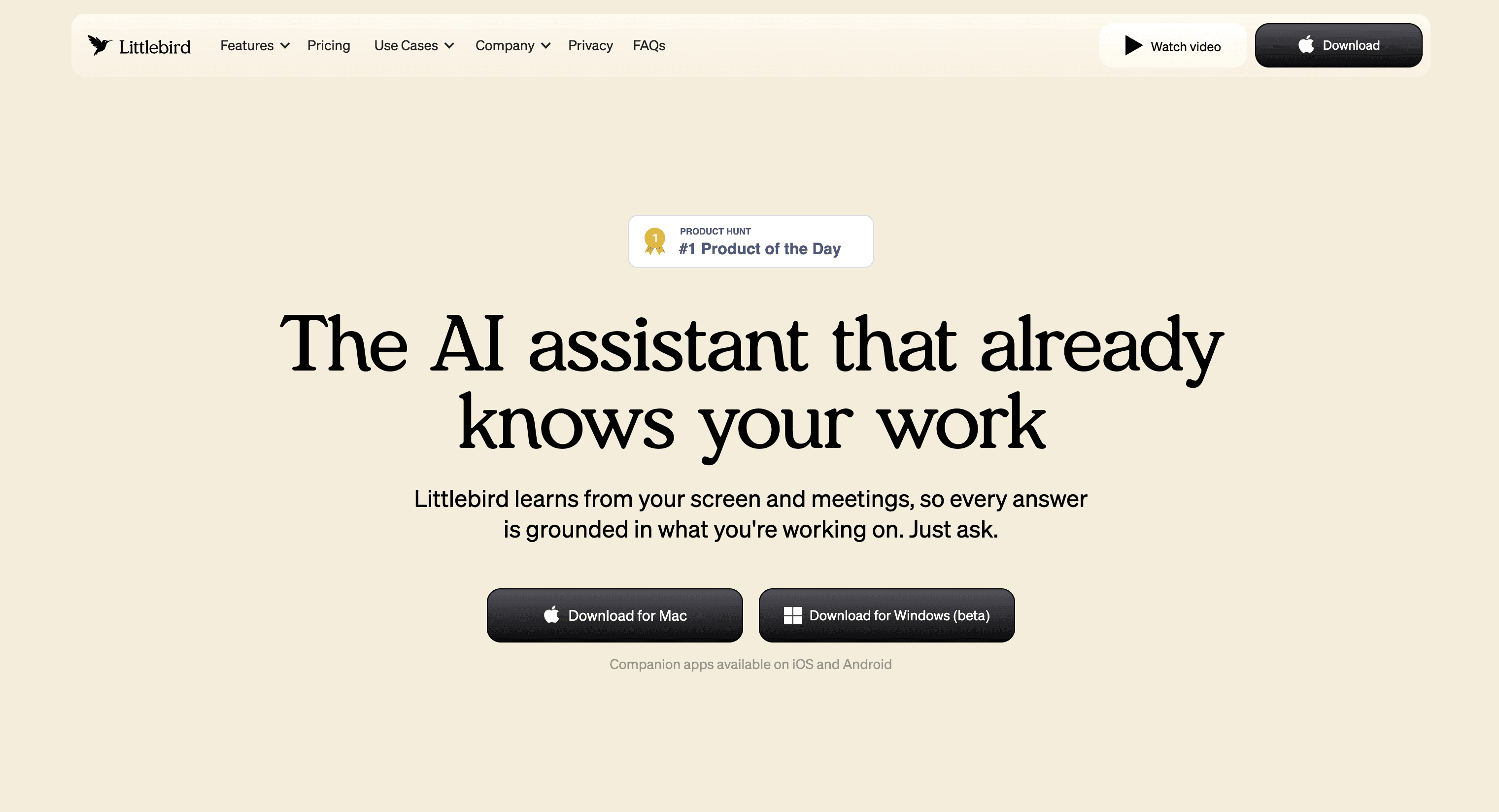 Littlebird is designed to remember your digital day. If your main frustration is forgetting what happened in a meeting, where you saw a file, or what was discussed earlier, that value proposition is clear and useful.