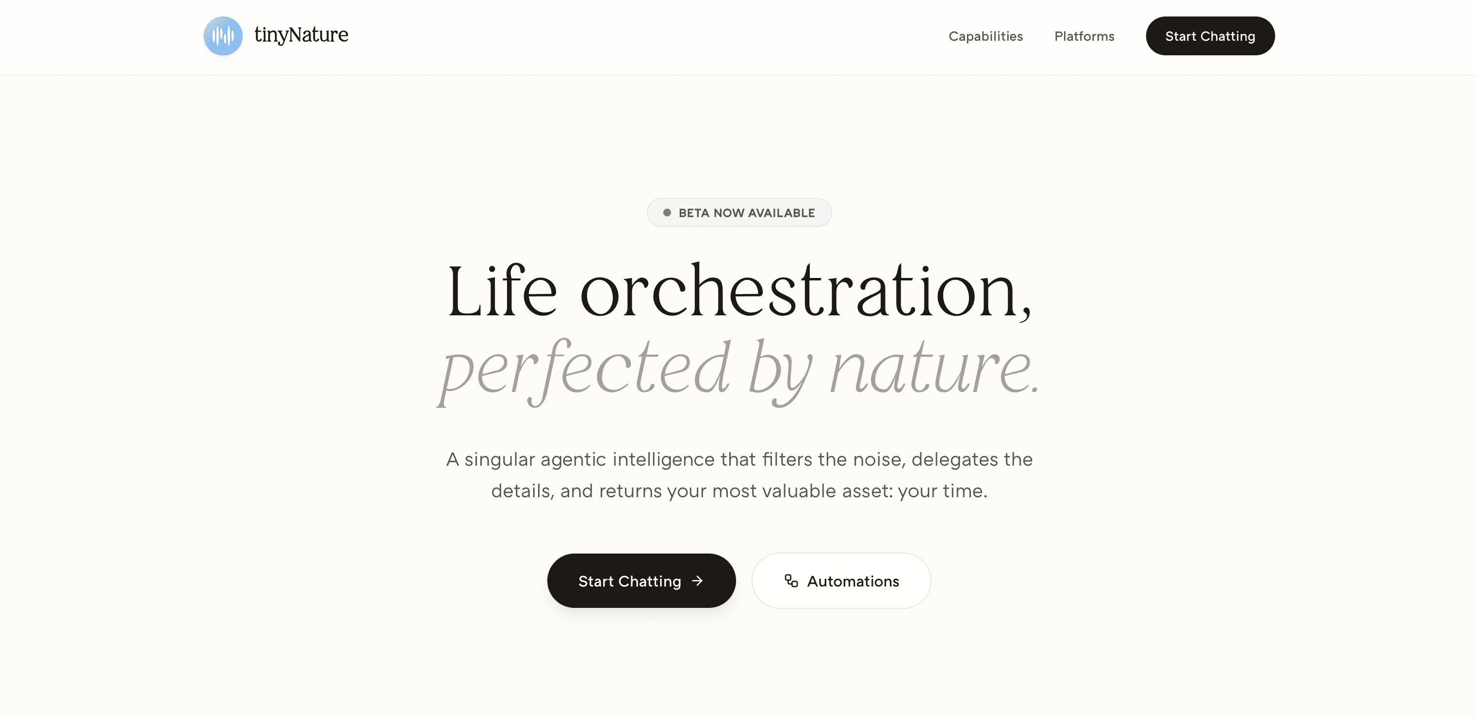 tinyNature is a messaging-based AI command center from Natura Umana / Natura AI. Its public positioning emphasizes handling operational friction such as inbox triage, reminders, delegated tasks, and connected-tool workflows, with Notion appearing among its broader integration story. Based on the currently visible public information, tinyNature looks promising as a general AI operations layer, though some details around pricing, voice capture depth, and advanced workflow behavior remain less clearly documented.