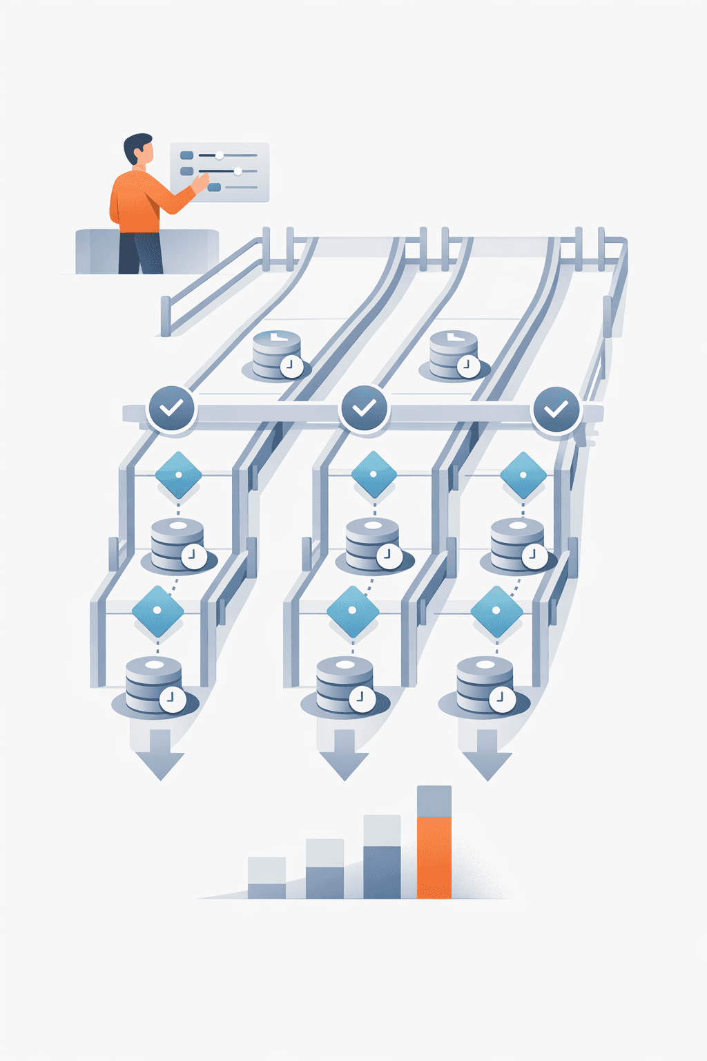 The operator’s job shifts from doing everything manually to managing a pipeline of AI-produced work.