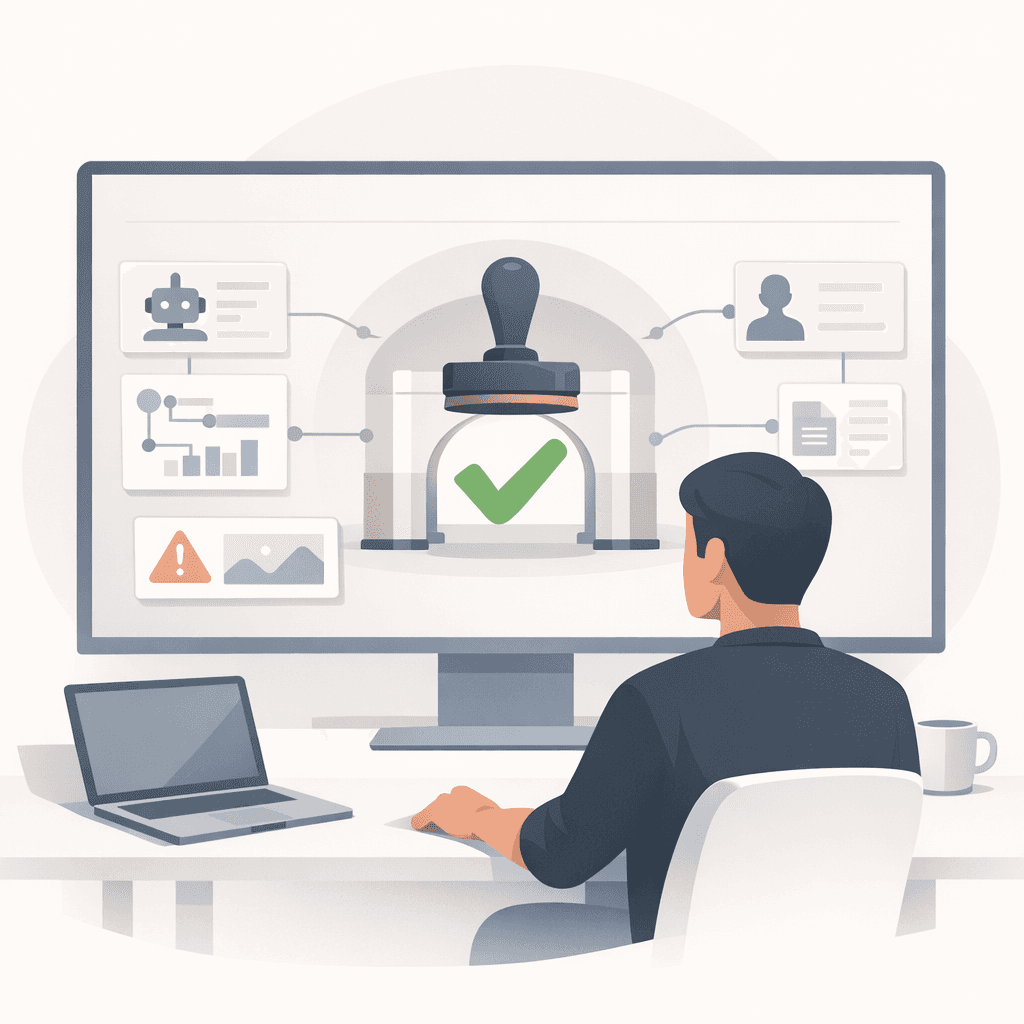 In practice, that looks like AI producing first drafts of everything that is repeatable, while a human owner stays responsible for: